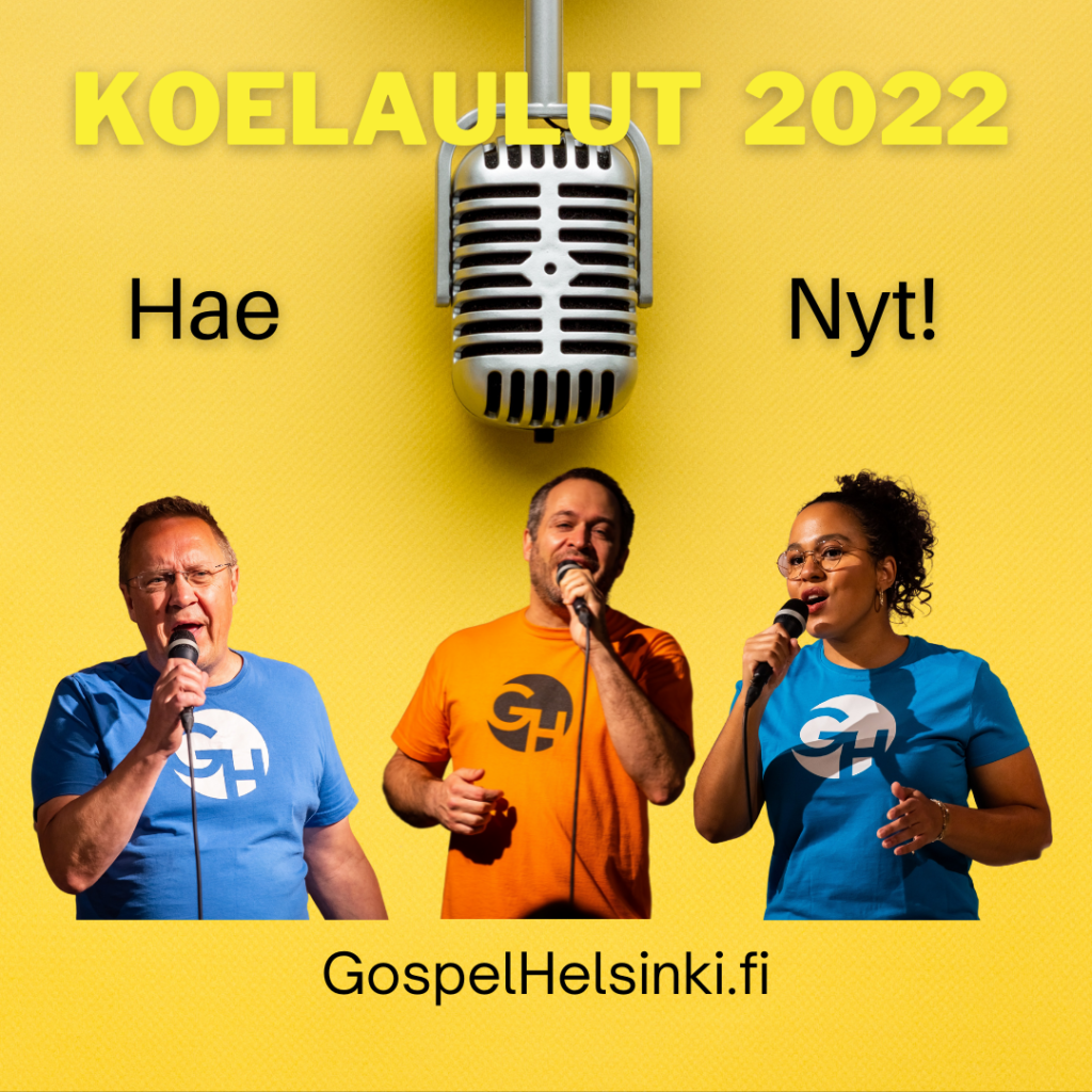 Koelaulu on Helsingissä lauantaina 15.1.2022 kello 12-16 välisenä aikana, aikaa varattu 20 min per hakija. Koelaulussa säestäjänäsi on GH-bändi: pianisti, lyömäsoittaja ja basisti. Laulat stemmasi koronatilanteen vuoksi yksin mutta saat tueksesi upean bändimme.